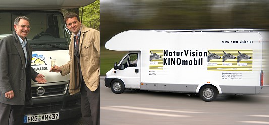 (hr) Die Knaus Tabbert Group, der größte private Sponsor des Internationalen Natur- und Tierfilmfestivals "NaturVision", übergab an die Verantwortlichen ein originelles und weltweit wohl einzigartiges Geschenk: ein Kinomobil. Um das mittlerweile fest etablierte Festival, das in 2004 vom 16. bis zum 19. September in Neuschönau im Bayerischen Wald stattfindet, an verschiedenen Orten bestmöglich vorstellen zu können, baute Knaus als bisher einmalige Sonderanfertigung ein hochwertiges Reisemobil, einen Knaus Sun Traveller 700 G, zu einem mobilen Kino aus.