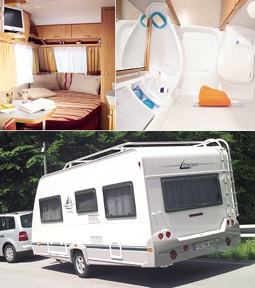 Grundrissvielfalt bei Eifelland Oben der "Holiday 395 TF" und das Bad des "Holiday 395 TK". (Fotos:Eifelland)(hr) "Holiday" heißt die Wohnwagen-Baureihe des bayerischen Herstellers Eifelland. Im Modelljahr 2004/2005 präsentiert sie sich mit neuem Außenstyling und sechs neuen Grundrissvarianten. Nach eigenen Angaben setzt Eifelland in der Produktphilosophie auf Kompaktheit, Flexibilität und Funktonalität.