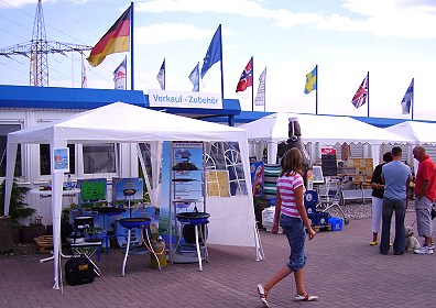 Ostsee Campingpartner in Lensahn lud zum Sommerfestwochenende (Foto:Claussen)(jc) Die Ostsee-Campingpartner GmbH in Lensahn bei Oldenburg in Schleswig-Holstein lud im August zum großen zweitägigen Sommerfest. Im Mittelpunkt stand neben zahlreichen Verkaufsständen der verschiedensten Anbieter aus der Campingbranche der Countdown zur bevorstehenden Mehrwertsteuer-Erhöhung. So wurde ein "Volks-Zelt" mit PVC-Innenhimmel und Regenrinne zu besonders günstigen Konditionen feilgeboten. Auch eine Reihe von günstigen Wohnwagen Schutzdächern der „Ostsee-Reihe“ wurden in der großen Ausstellung präsentiert und einem Belastungstest unterzogen. Alle Mitarbeiter des Unternehmens begaben sich auf eines der in der Ausstellung montierten Schutzdächer.