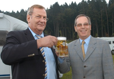 VIP Besuchercamping hat seine Pforten geöffnet Stießen an auf die Eröffnung des VIP Besuchercamping: Albert Cramer, Inhaber der Warsteiner Brauerei, und Peter Meyer, Präsident des Allgemeinen Deutschen Automobil Clubs. (Foto:Warsteiner)(jc) (war) Dieser Tage wurde das VIP (Vans in Paradise) Besuchercamping der Warsteiner Brauerei feierlich eröffnet. Peter Meyer, Präsident des ADAC, gab das 4000 Quadratmeter große Areal für die Campingfans frei. "Wir freuen uns, dass Herr Meyer als Vortester unseren Platz in Augenschein genommen hat", so Albert Cramer, Inhaber der Warsteiner Brauerei, zum Besuch des ADAC Präsidenten. "Das VIP Besuchercamping ist eine sinnvolle Ergänzung zu den bestehenden Möglichkeiten. Nun können auch Campingfreunde direkt beim Besucherzentrum der Warsteiner Brauerei übernachten", erklärte Albert Cramer weiter.