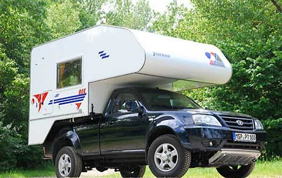 Tata Xenon als Basisfahrzeug genutzt (Foto: Tischer)(red) Tischer, das älteste Unternehmen für Pick-Up Wohnmobile in Deutschland, wurde 1973 gegründet und hat sich auf die Herstellung von Reisemobil-Absetzkabinen für so ziemlich alle lieferbaren Pick-Ups spezialisiert. Mit dem neuen Tata Xenon hat der fränkische Hersteller aus Kreuzwertheim ein modernes und preiswertes Basisfahrzeug aus Fernost im Programm, auf den die bewährte "Trail 200 Kabine" passt.
