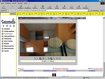 Nachrichten > Wohnmobile, Wohnwagen, Technik und Zubehör | Neuerung bei Online-Fahrzeugpräsentationen Technisch aufgerüstet hat die Caravania GmbH (Dettingen/Teck) ihre Website. Durch interaktive 360-Grad-Panorama-Aufnahmen kann man sich jetzt einen besseren Eindruck vom Inneren der angebotenen Reisemobile machen. (hr)
