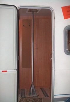 Eine neuartige Stütze hilft gegen das Durchbiegen des Wohnwagendachs unter Schneelast (Foto:Richter)(hr) Wer seinen Caravan in schneereichen Gebieten überwintert, kennt die Unsicherheit: Was geschieht mit dem Caravan-Dach, wenn es in seiner Abwesenheit stark schneit und niemand da ist, der den Schnee vom Dach räumt? Bei starker Schneelast kann sich das Wohnwagen-Dach nämlich nach innen durchbiegen, was zur Undichtigkeit des Dachs führen kann.