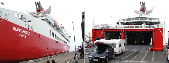Attica Enterprises investiert weiter in den boomenden „Camping an Bord“ - Markt Superfast XI im Hafen von Ancona (Fotos:Claussen)(jc) Das griechische Unternehmen Attica Enterprises S.A., zu deren Gruppe die bekannten Fährgesellschaften Superfast Ferries und Blue Star Ferries gehören, macht mit der bei der Lübecker Flender Werft AG gebauten Superfast XII das Dutzend an Fährschiffen voll. Zusammen mit ihrem Schwesterschiff Superfast XI das ebenfalls in diesem Jahr in Deutschland ausgeliefert wurde, soll der Neubau die griechischen Häfen Patras und Igoumenitsa mit der italienischen Hafenstadt Ancona verbinden. Beide Schiffe verfügen über eine Kapazität von 1550 Passagieren und bieten die Möglichkeit von „Camping an Bord“. Die vier 12-Zylinder Motoren entwickeln eine Gesamtleistung von 48.000 kW und beschleunigen die Fähren auf nahezu 30 Knoten. Auf zehn Decks wird auf 199.9 Metern und 25 Metern Breite modernster Fährkomfort geboten. Auch ein satellitengestütztes Internet-Café ist mit an Bord.